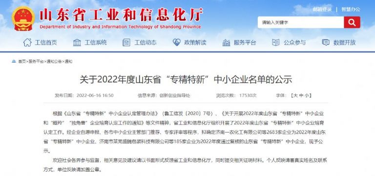 祝賀我公司獲得2022年度山東省“專(zhuān)精特